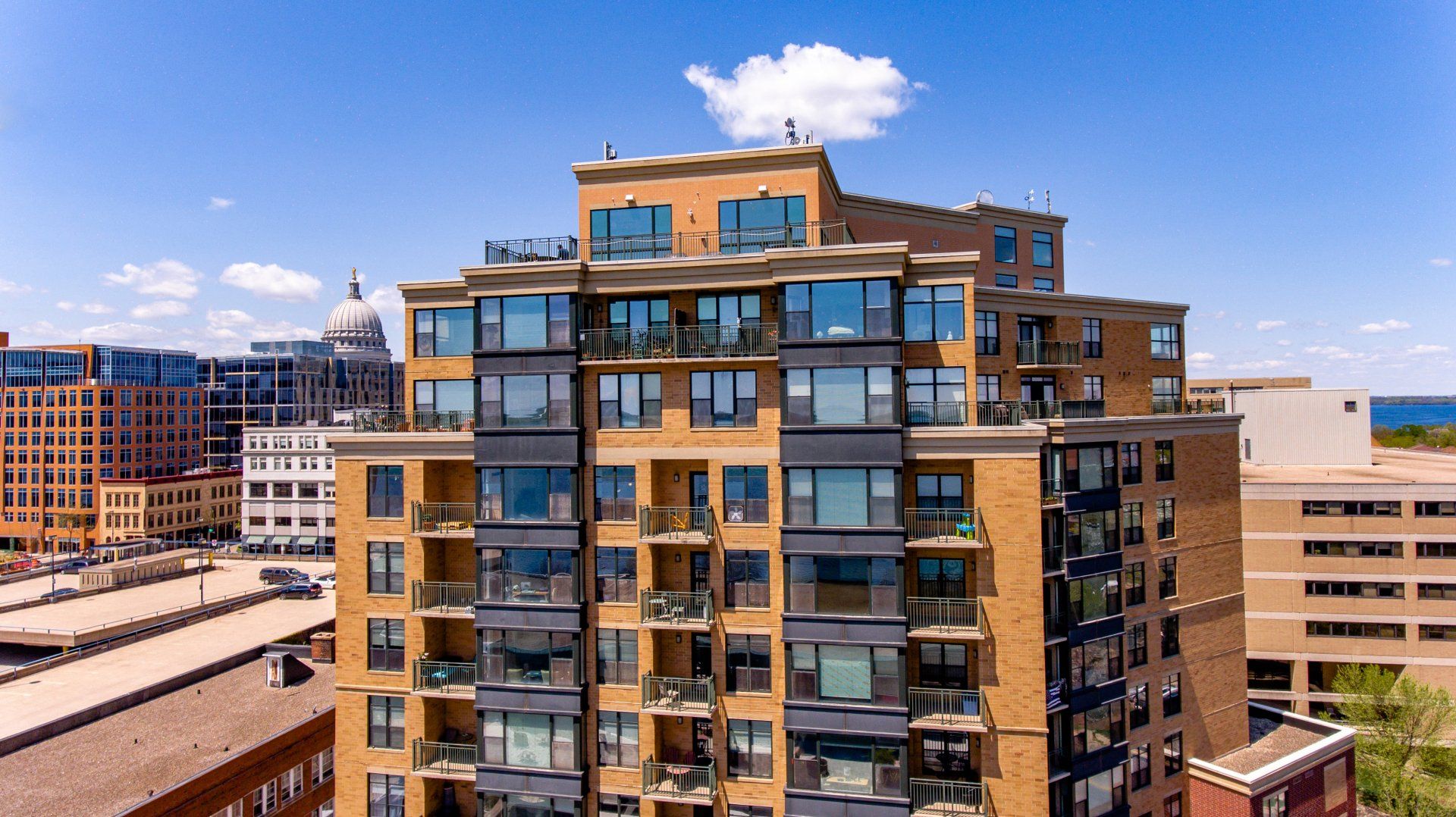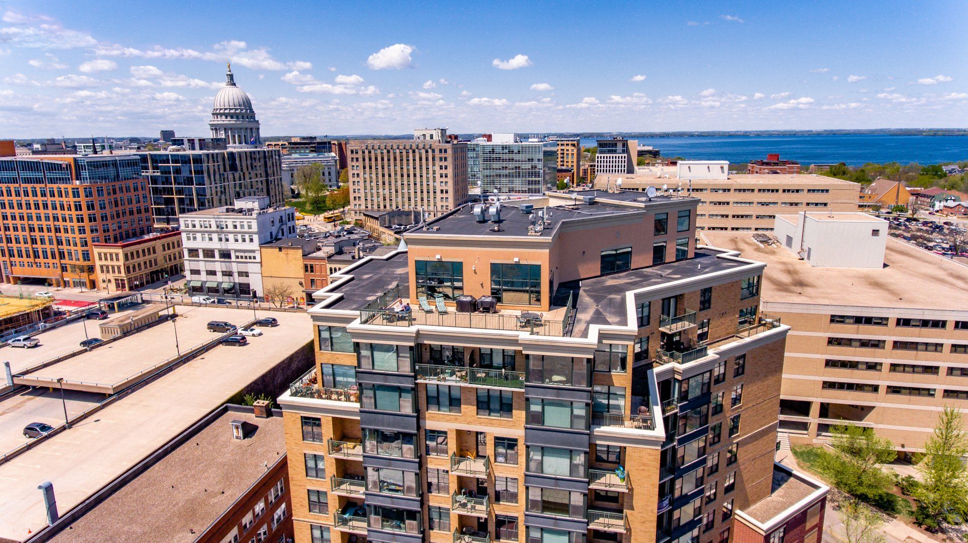 Located in the heart of Downtown Madison, one block from the Capitol Square, this prime location is within walking distance of the Wisconsin State Capitol, Dane County Farmers' Market, gourmet restaurants, community events, and entertainment venues.