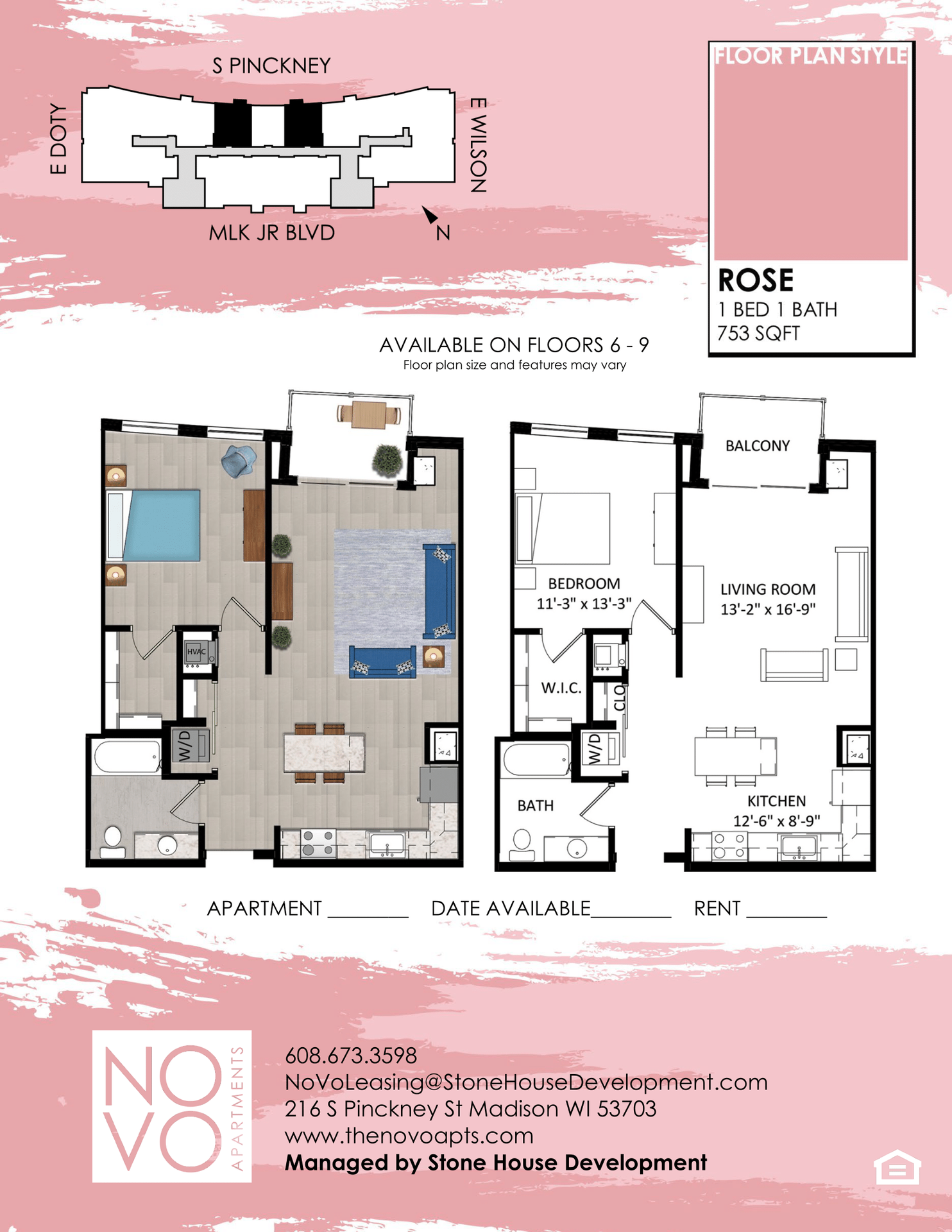 Rose Floor Plan - 1 Bedroom - Downtown